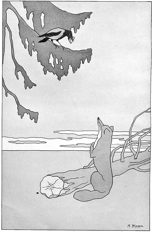 ![Иллюстрация к басне Эзопа ворон и лисица]()