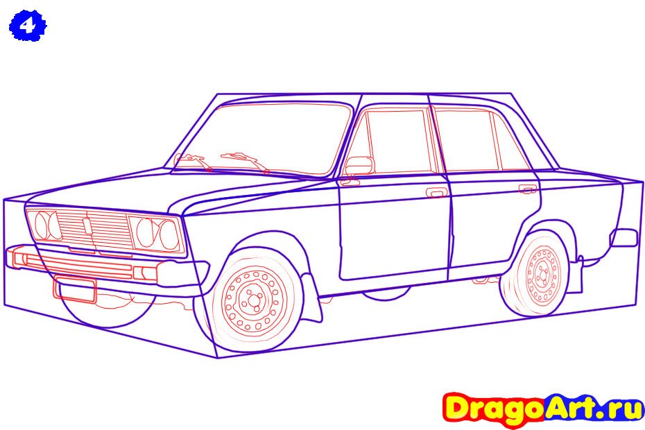 ![ВАЗ 2106 рисунок карандашом поэтапно]()