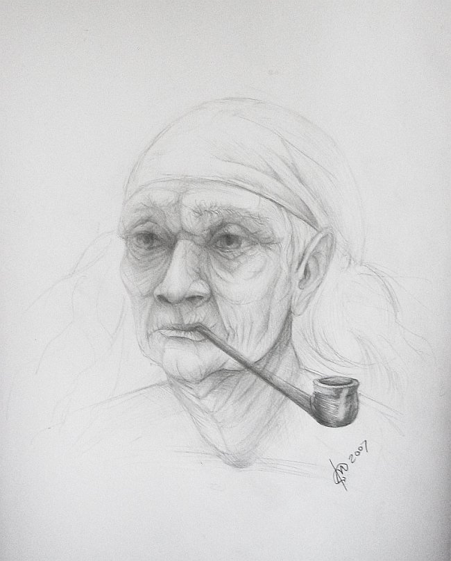 Портрет бабушки карандашом