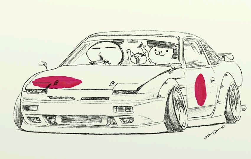 ![Эскизы японских машин]()