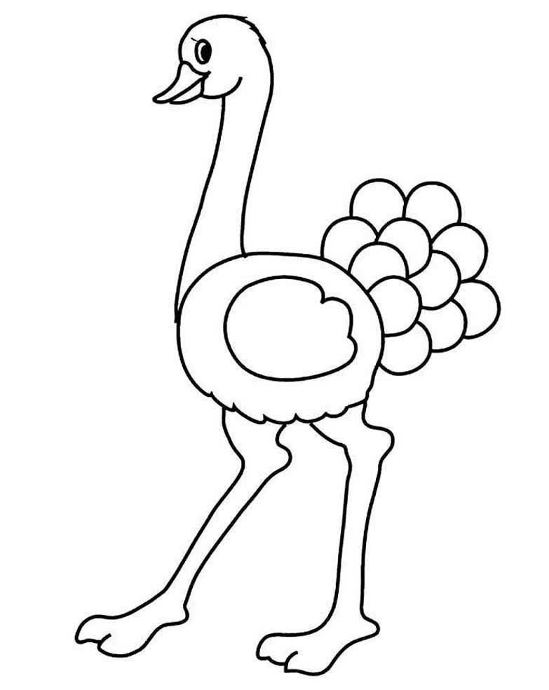 Страус раскраска для малышей