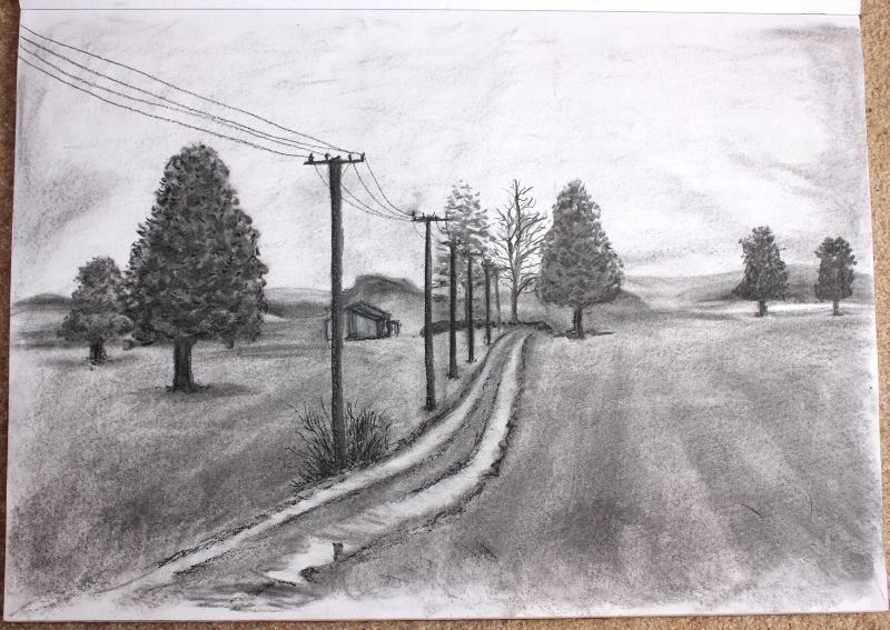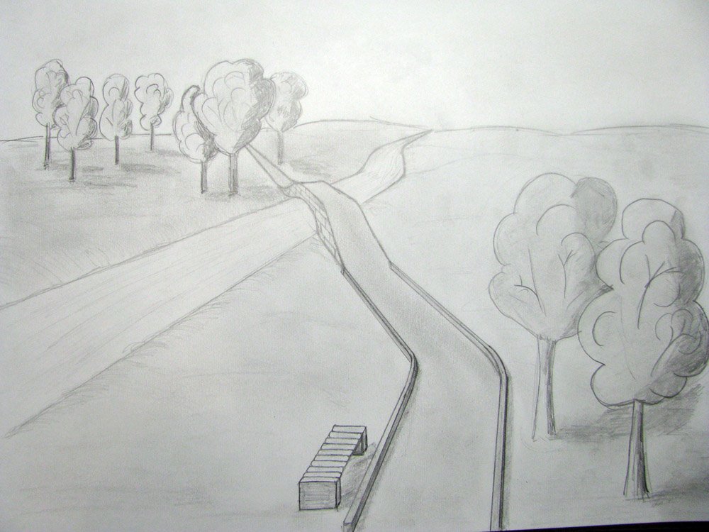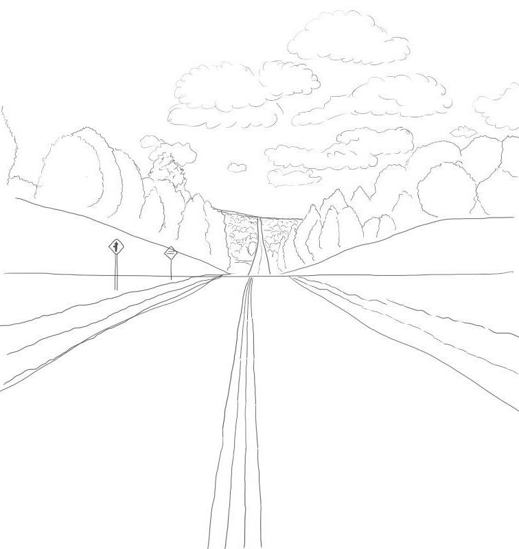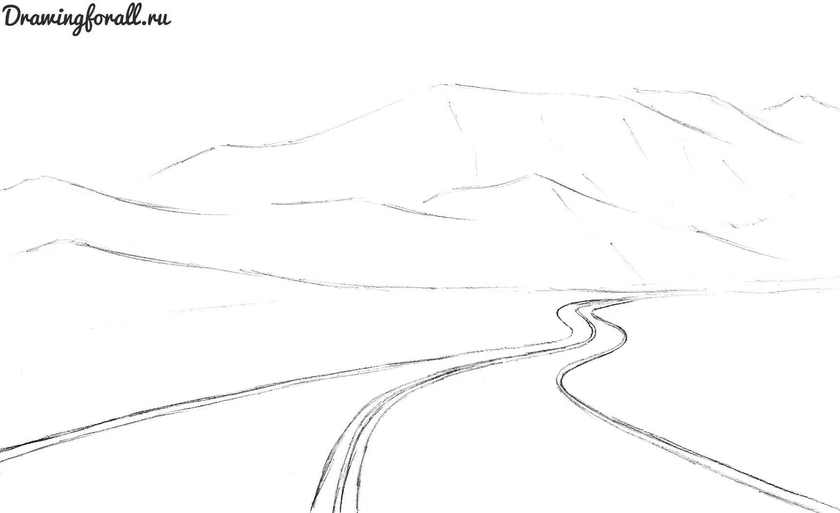 Рисунок дороги карандашом