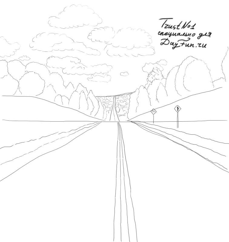 Рисунок дороги уходящей в даль