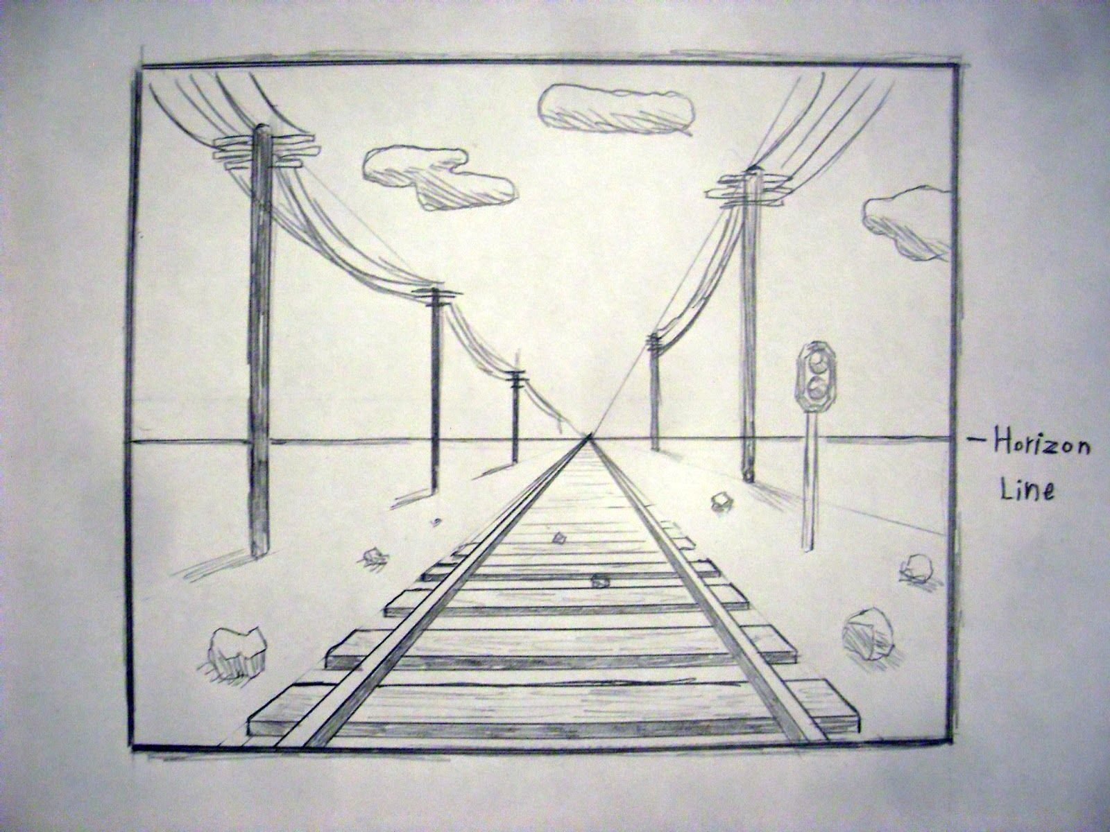 Перспектива железная дорога рисунок