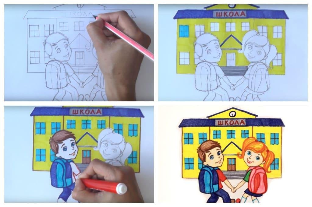 Рисунок школа поэтапно