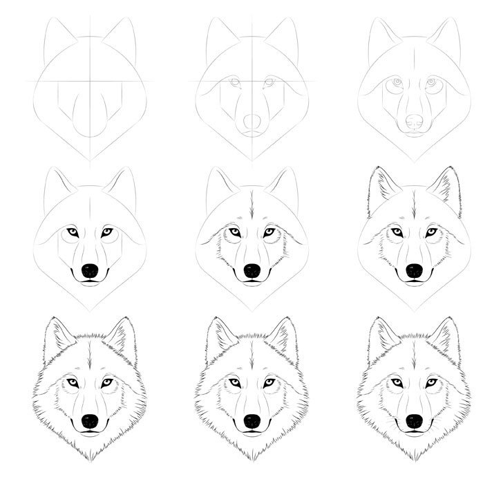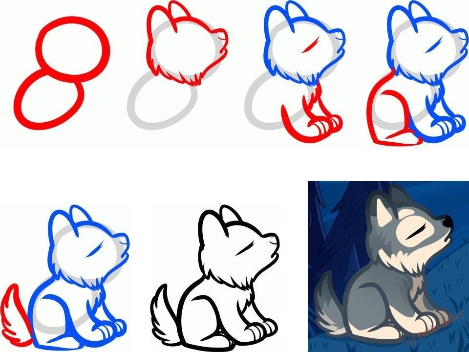 Пошаговое рисование волка