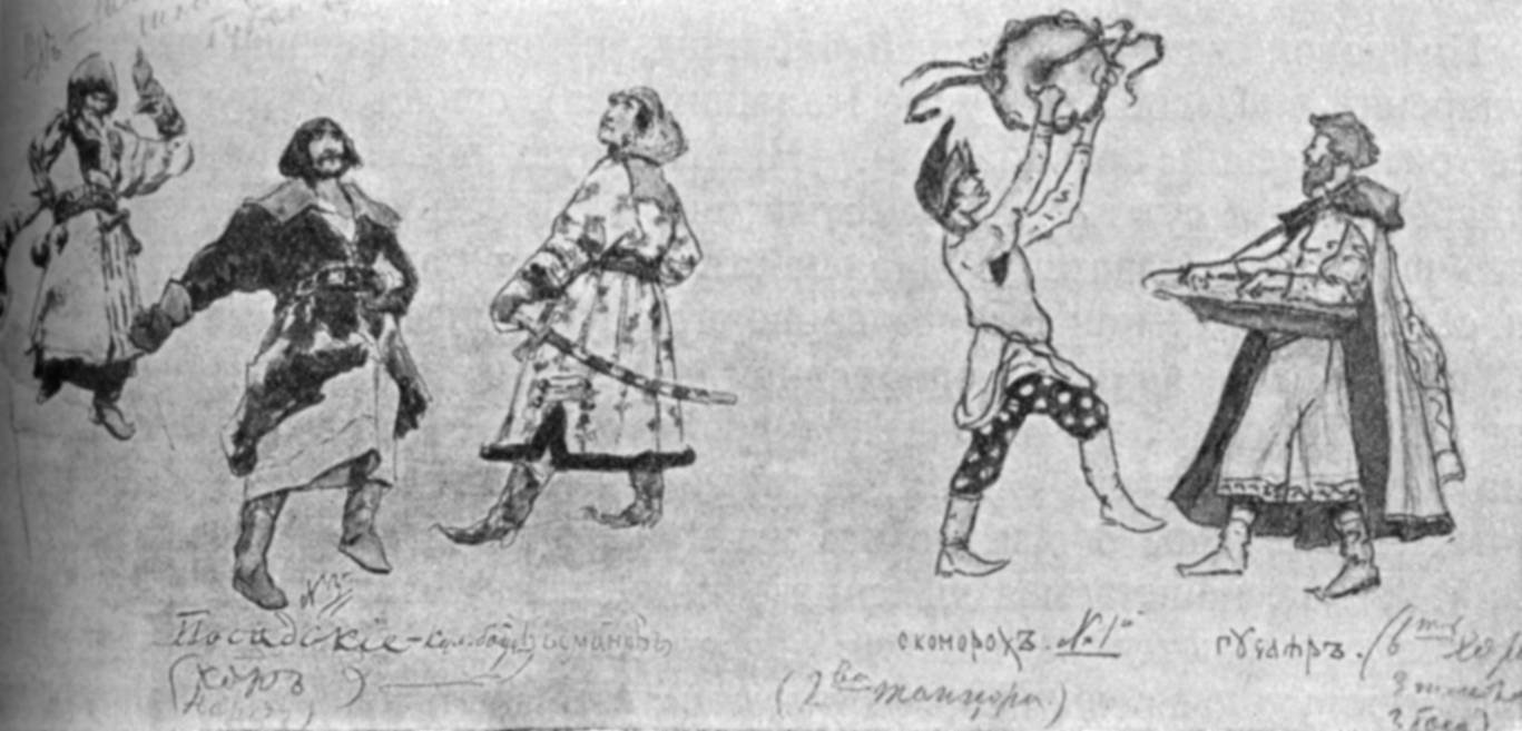Рисунок Лермантов про купца и Ивана Васильевича и опричника