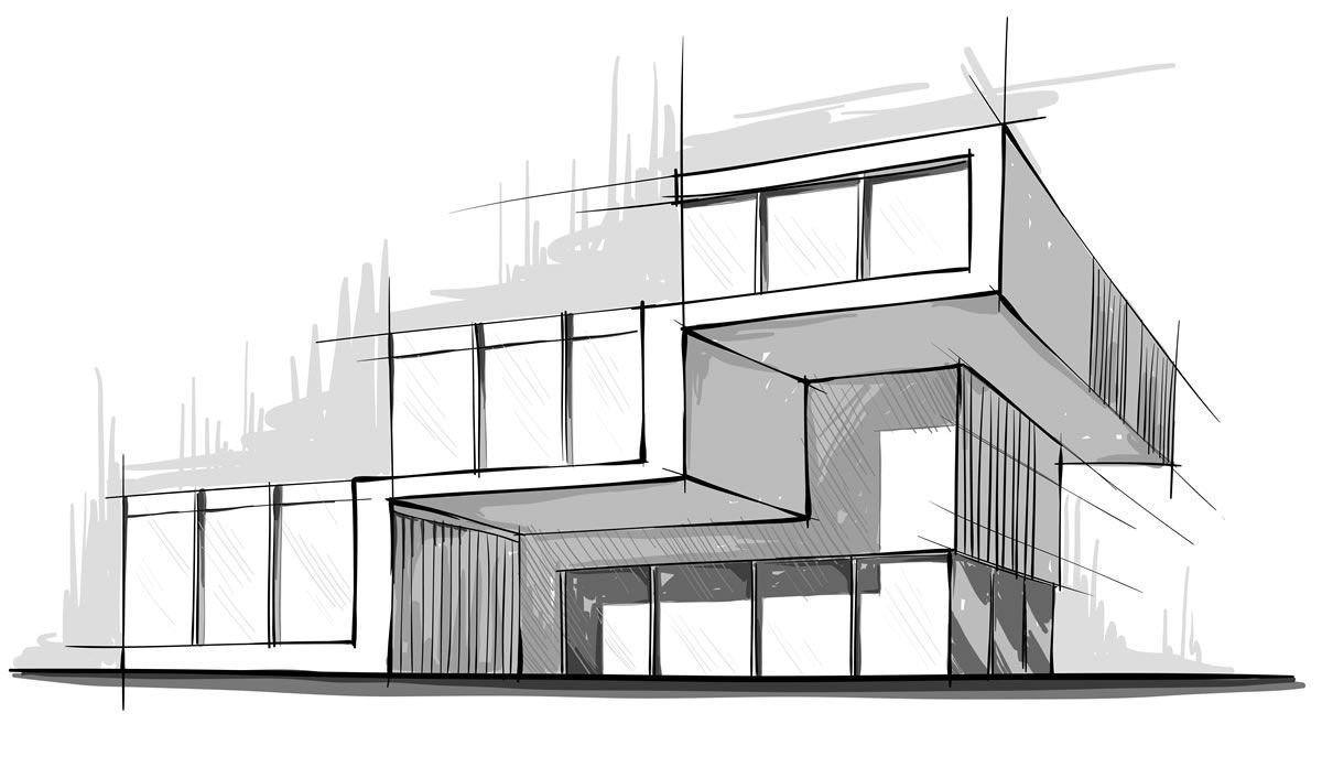 Эскиз здания в современном стиле