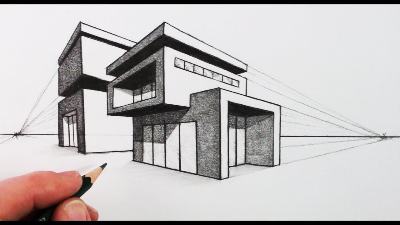 Дом снизу карандашом перспектива