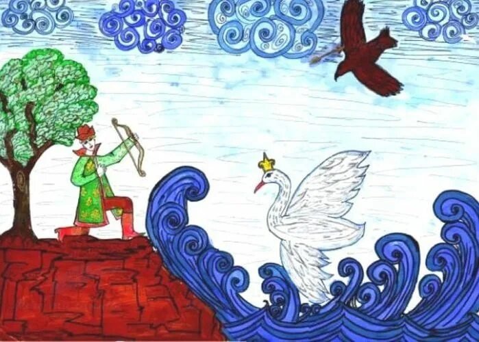 ![Сказка о царе Салтане рисунки детей]()
