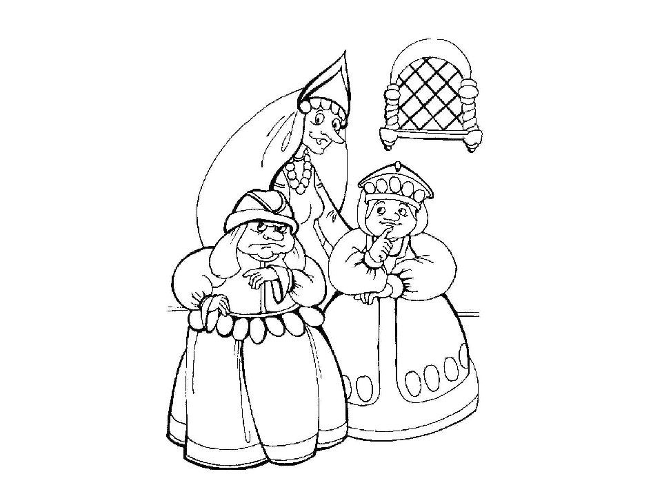 ![Сказка о царе Салтане раскраска три девицы под окном]()