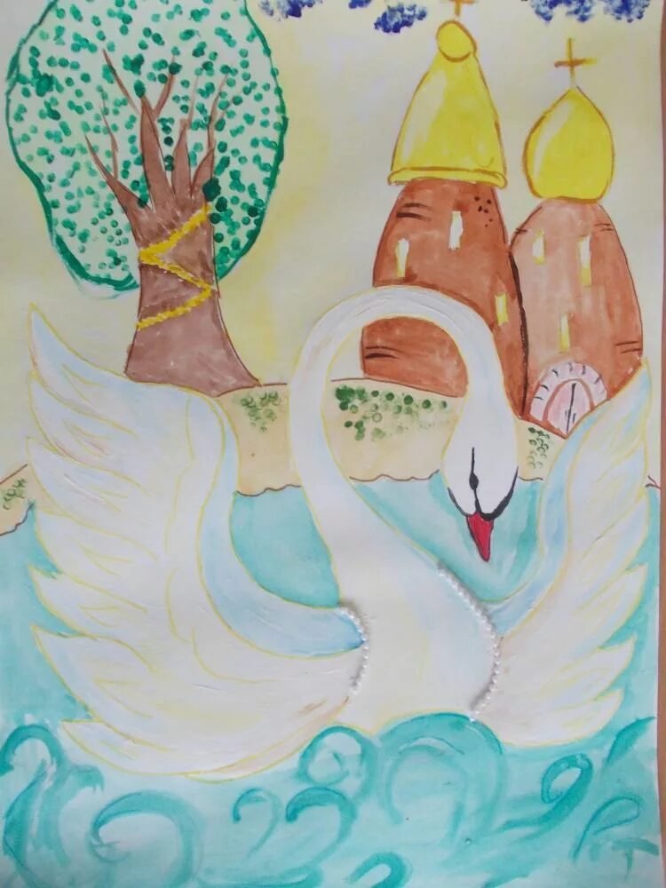 ![Царевна лебедь рисунок детский]()