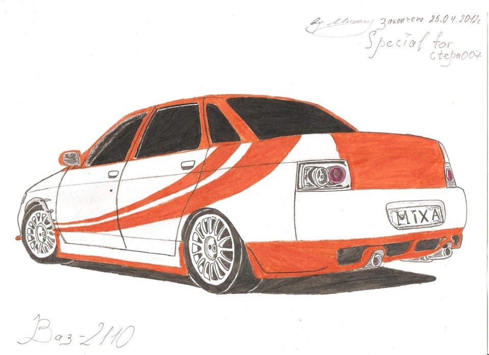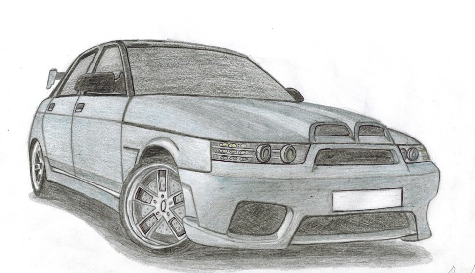 ![ВАЗ 2110 рисунок карандашом сзади]()