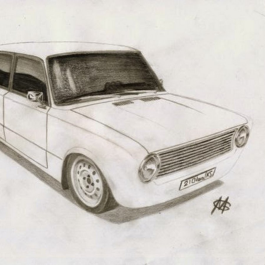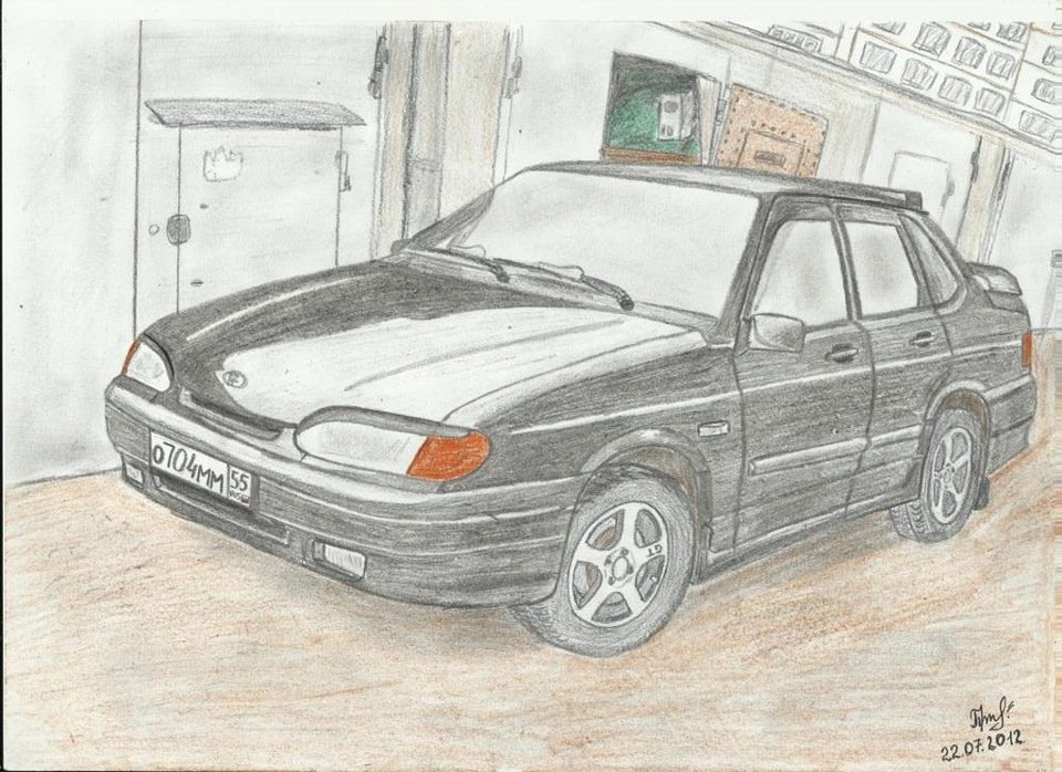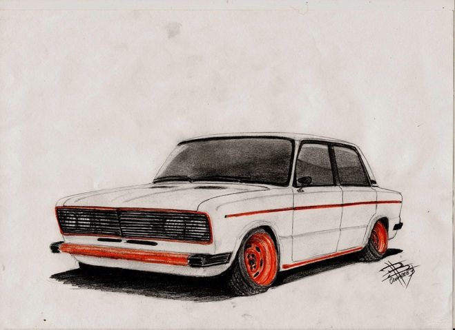 ![ВАЗ 2107 рисунок карандашом сбоку]()