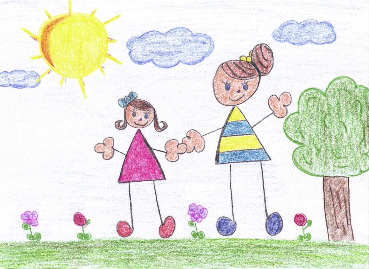Детский рисунок мама и дочка