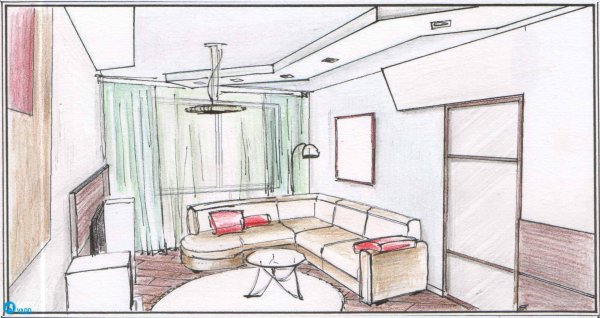 ![Зарисовка интерьера комнаты]()