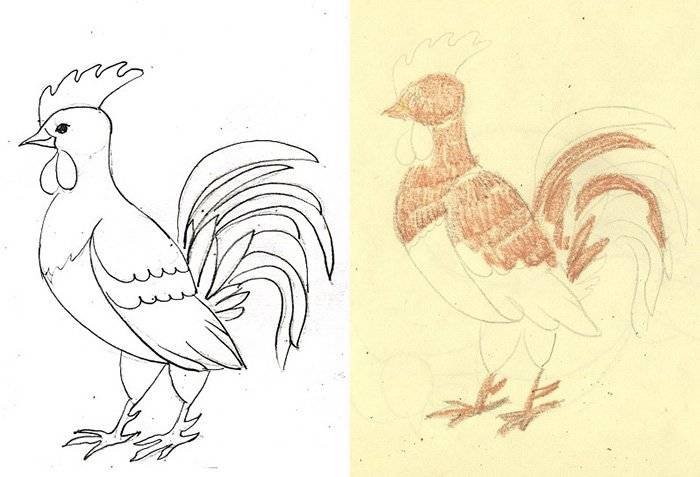 Рисунок петуха карандашом для срисовки