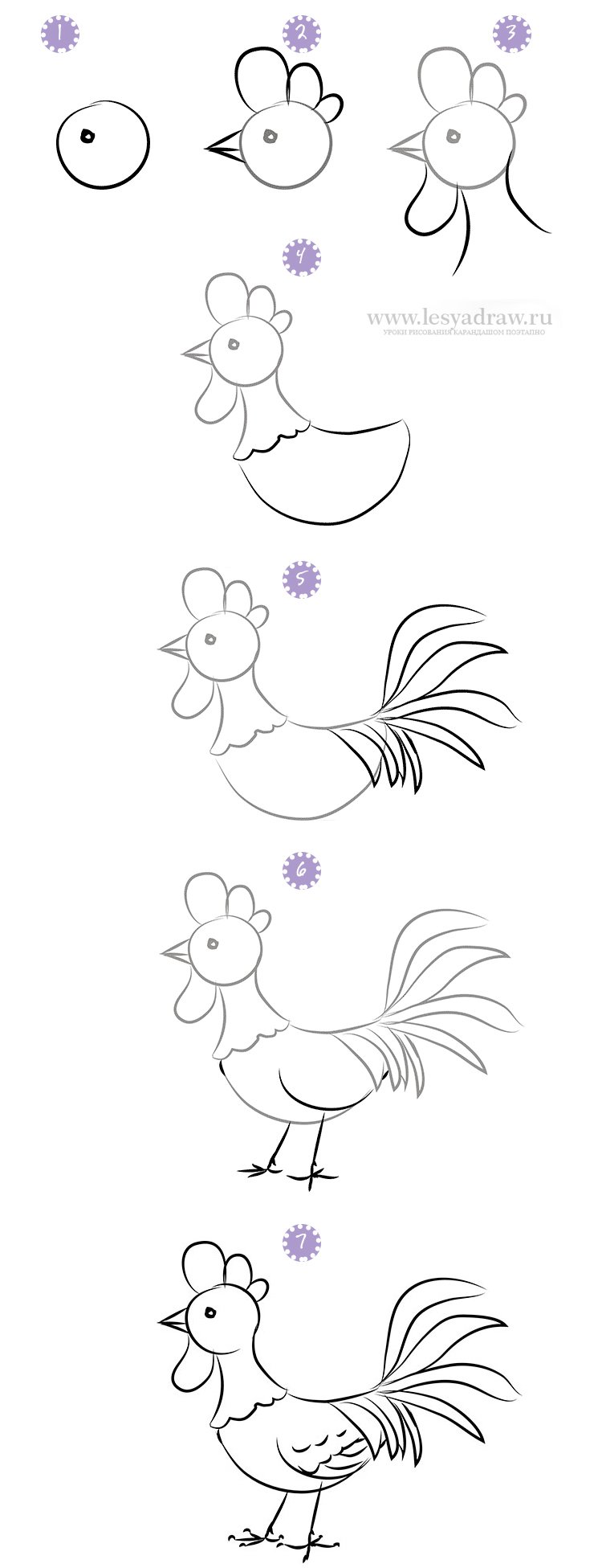 ![Нарисовать петуха карандашом поэтапно для начинающих детей]()