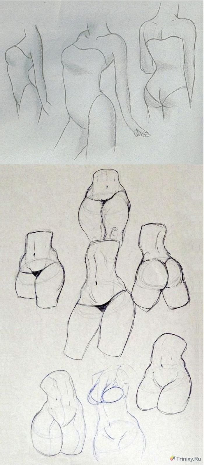 ![Тело девушки для срисовки карандашом]()