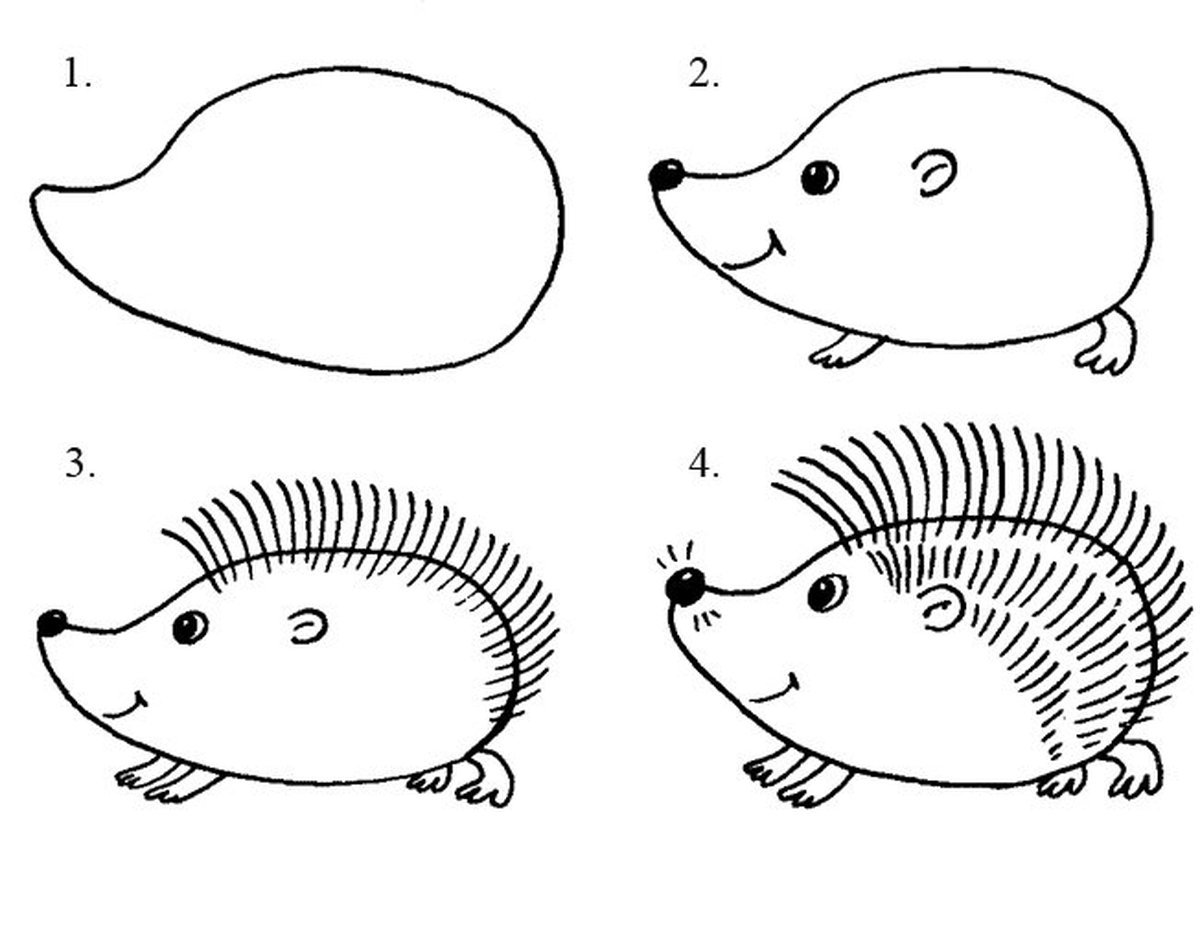 ![Нарисовать ежа поэтапно карандашом для детей]()