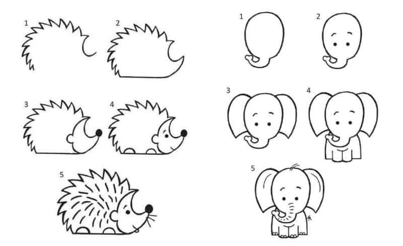 ![Поэтапное рисование животных]()