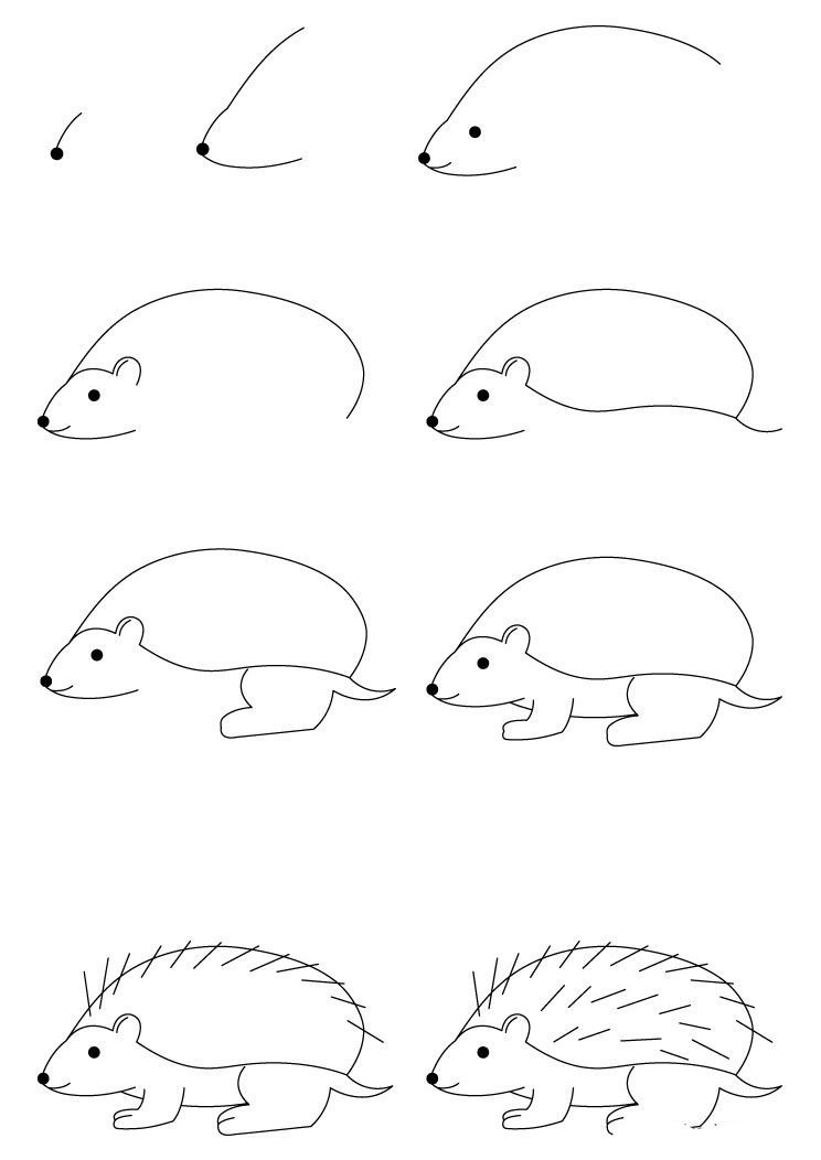 Поэтапный рисунок ежа