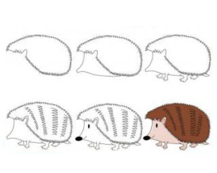 ![Поэтапный рисунок ежа]()