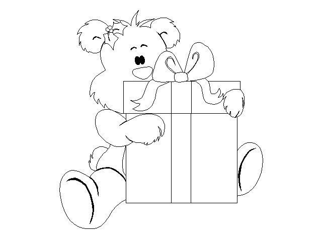 ![Раскраска мишка с подарком]()