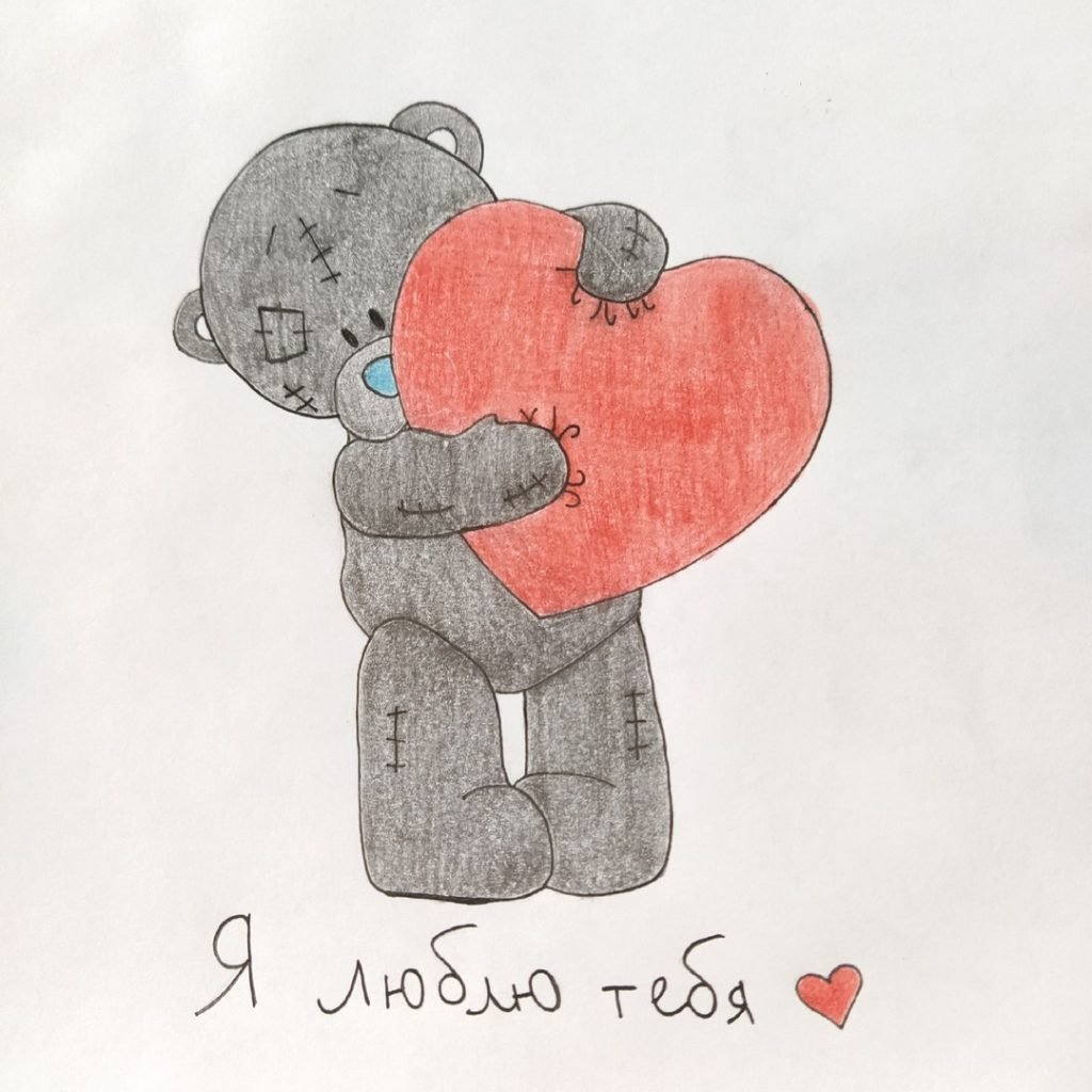 Мишка с сердечком рисунок карандашом