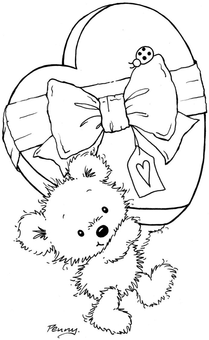 ![Мишка с сердечком рисунок]()