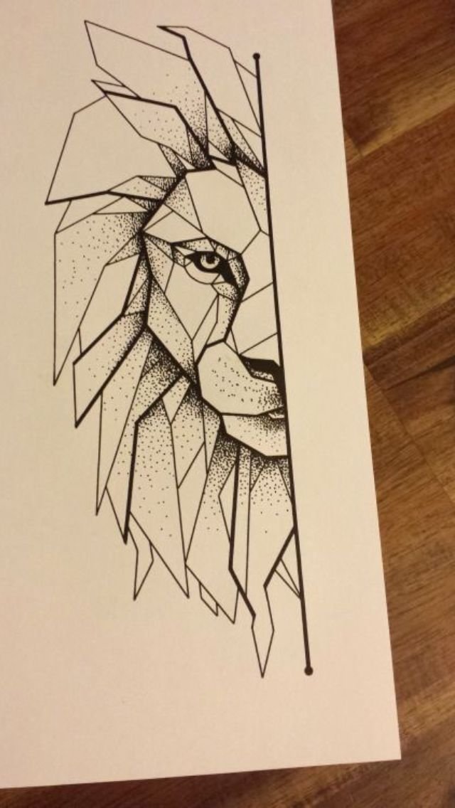 ![Лев в стиле лайнворк]()