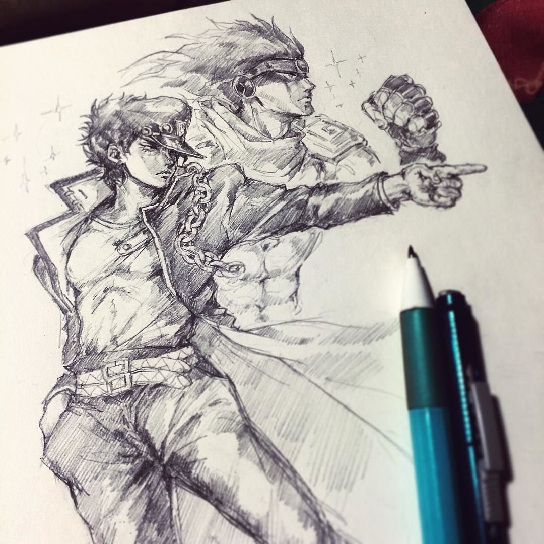 ![Рисунок Джо Джо Джотаро и Стар платинум]()
