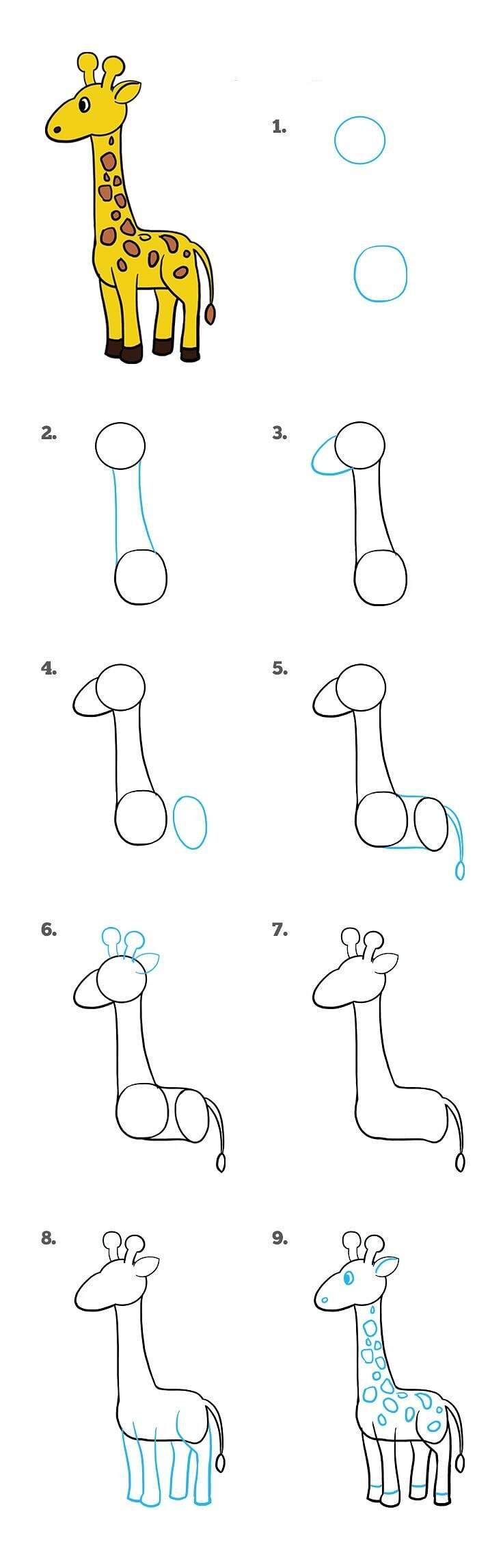 ![Жираф поэтапное рисование для детей]()