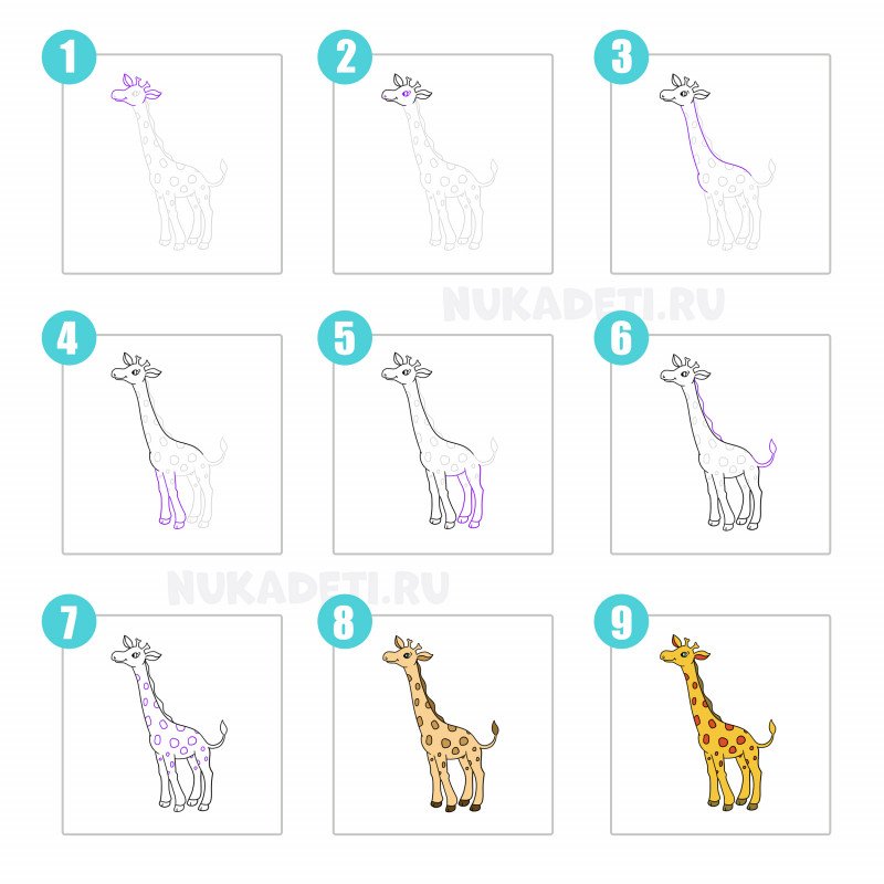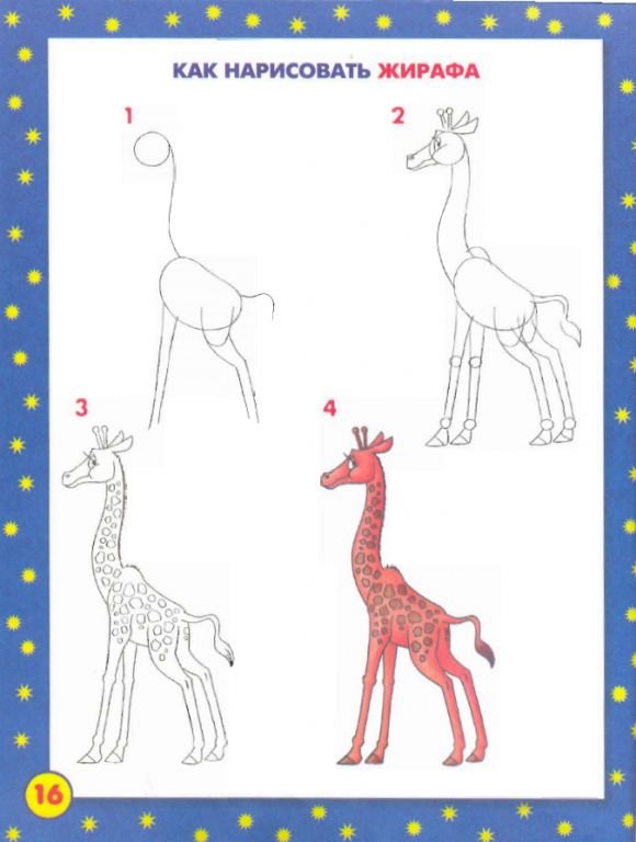 Жираф поэтапное рисование для детей