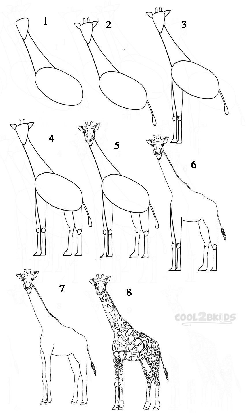 Поэтапное рисование жирафа, зебры
