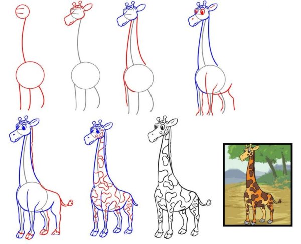 ![Рисование жирафа поэтапно]()