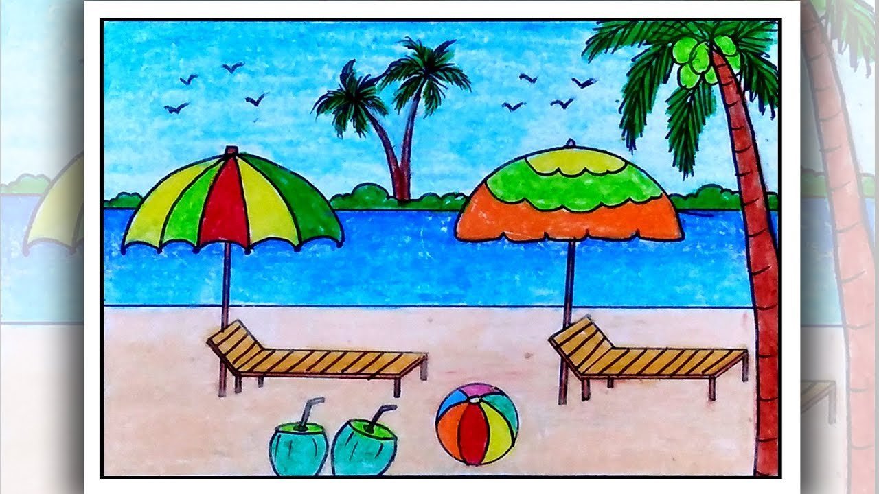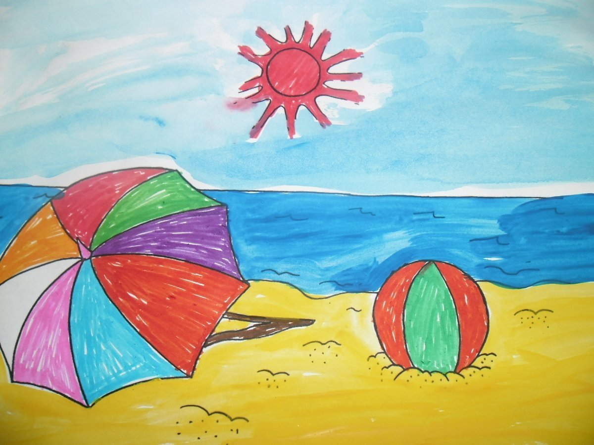 ![Рисование для детей пляж]()
