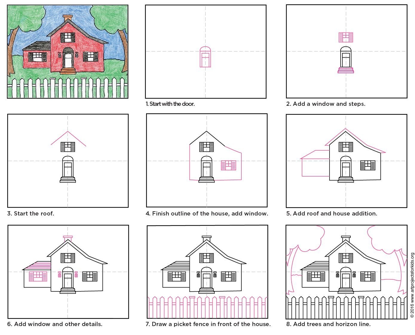 ![Поэтапное рисование дом]()