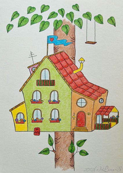 ![Домик нарисованный карандашом в цвете]()
