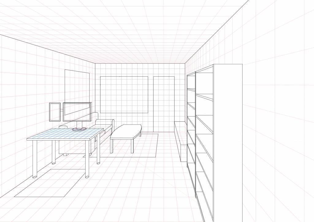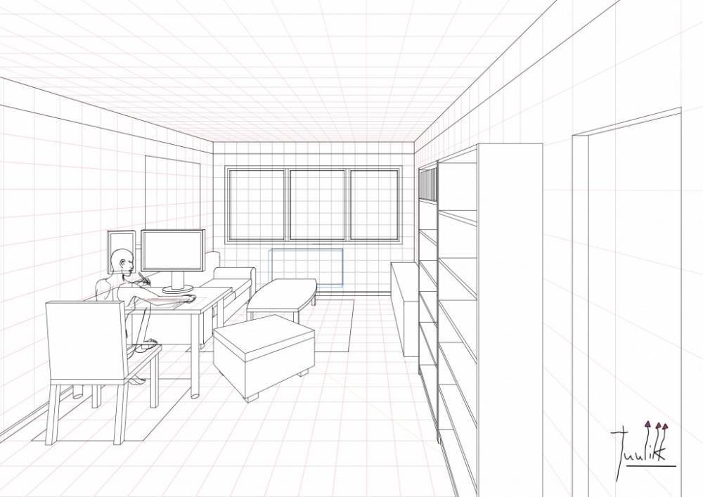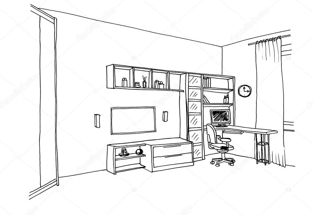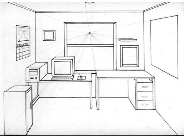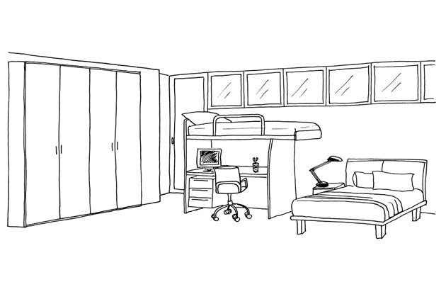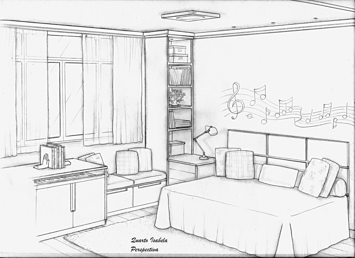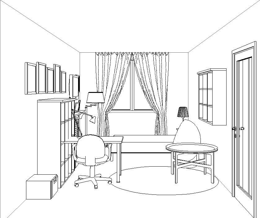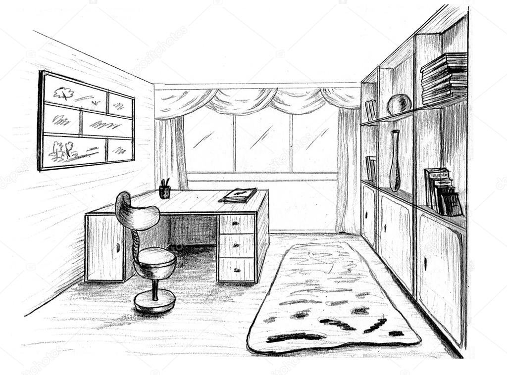 ![Рисунок детской комнаты в перспективе с мебелью]()