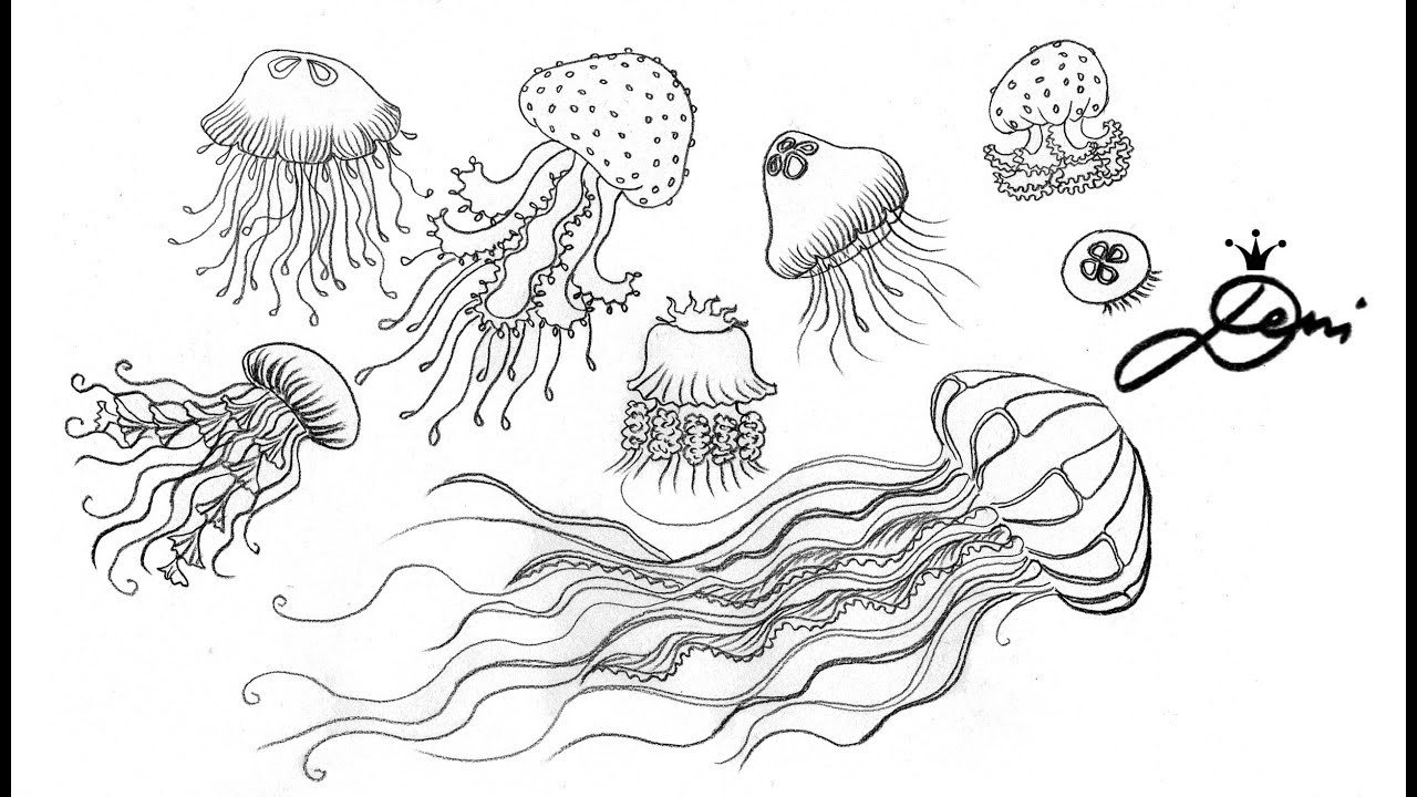 ![Медузы рисунки лёгкие]()