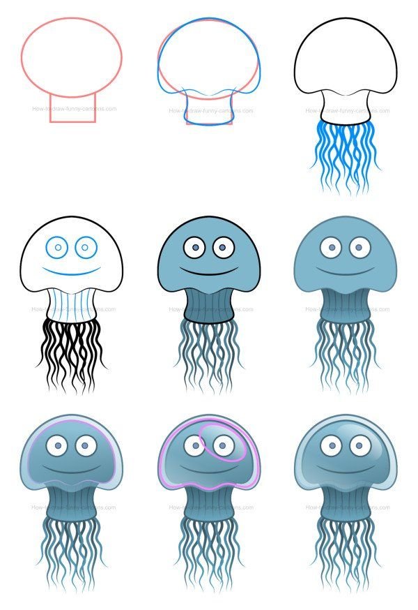 Пошаговое рисование медузы