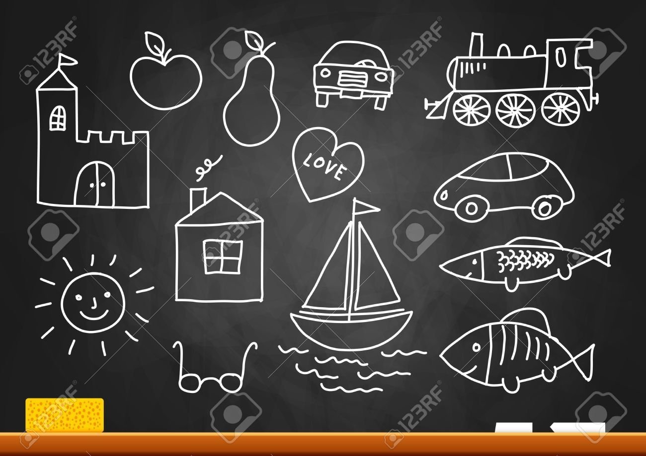 Простые рисунки мелом на доске