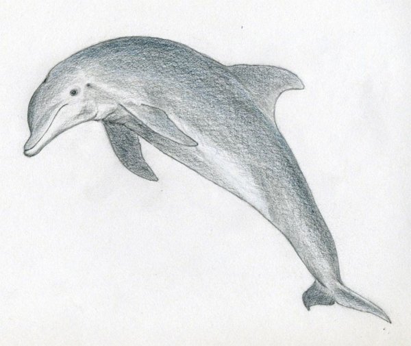 ![Дельфин простым карандашом]()