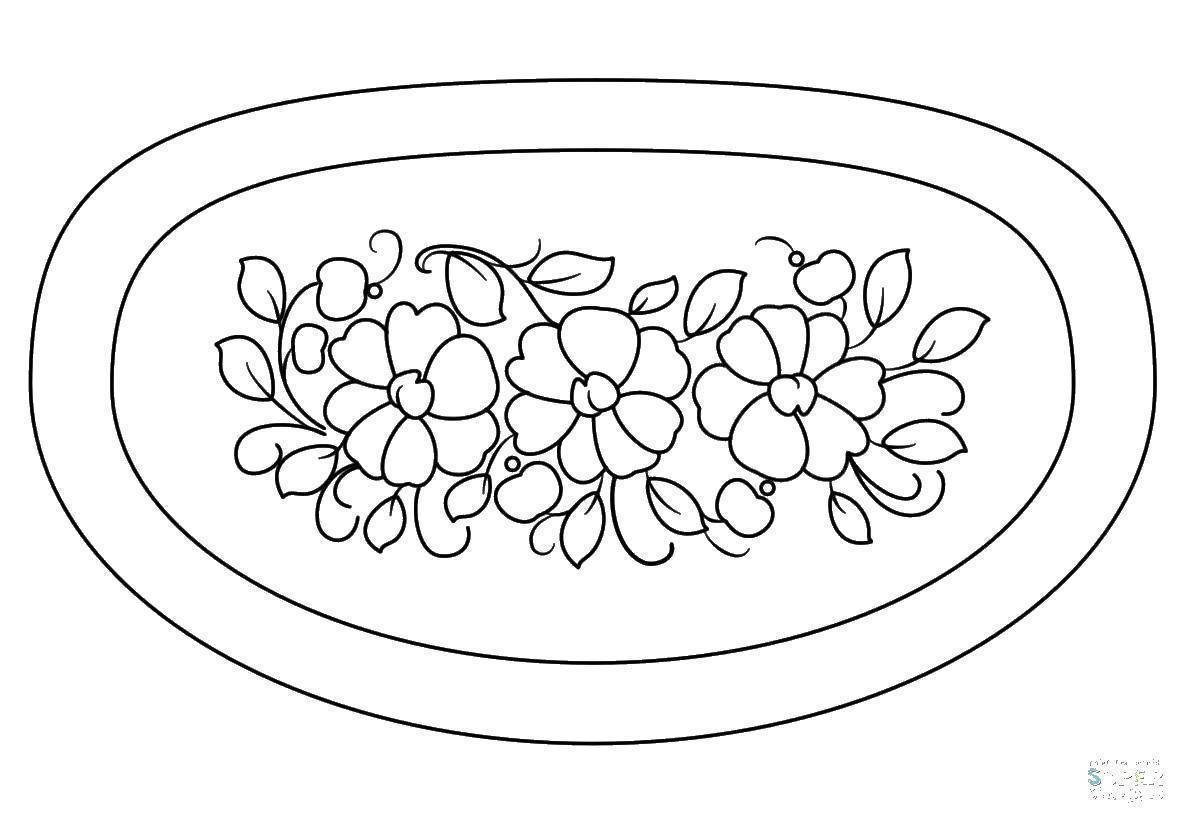 ![Жостовская роспись раскраска тарелка]()