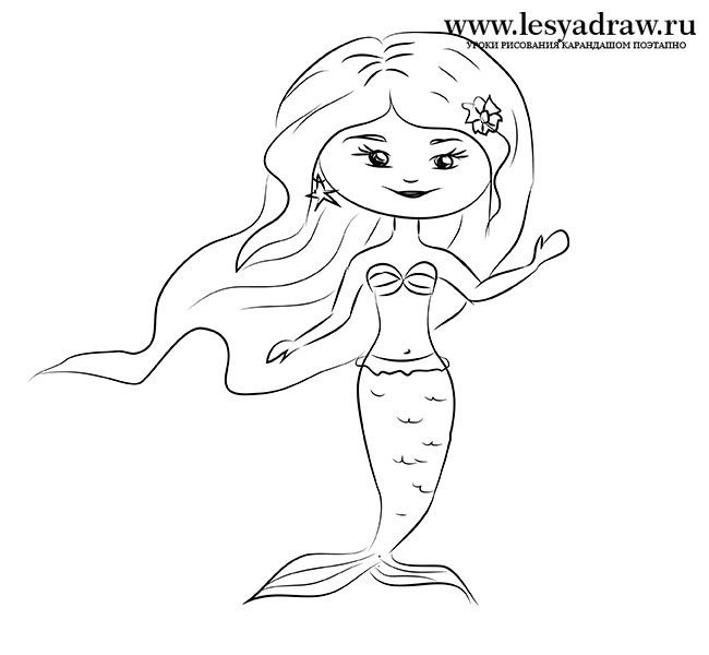 Русалка рисунок карандашом для детей