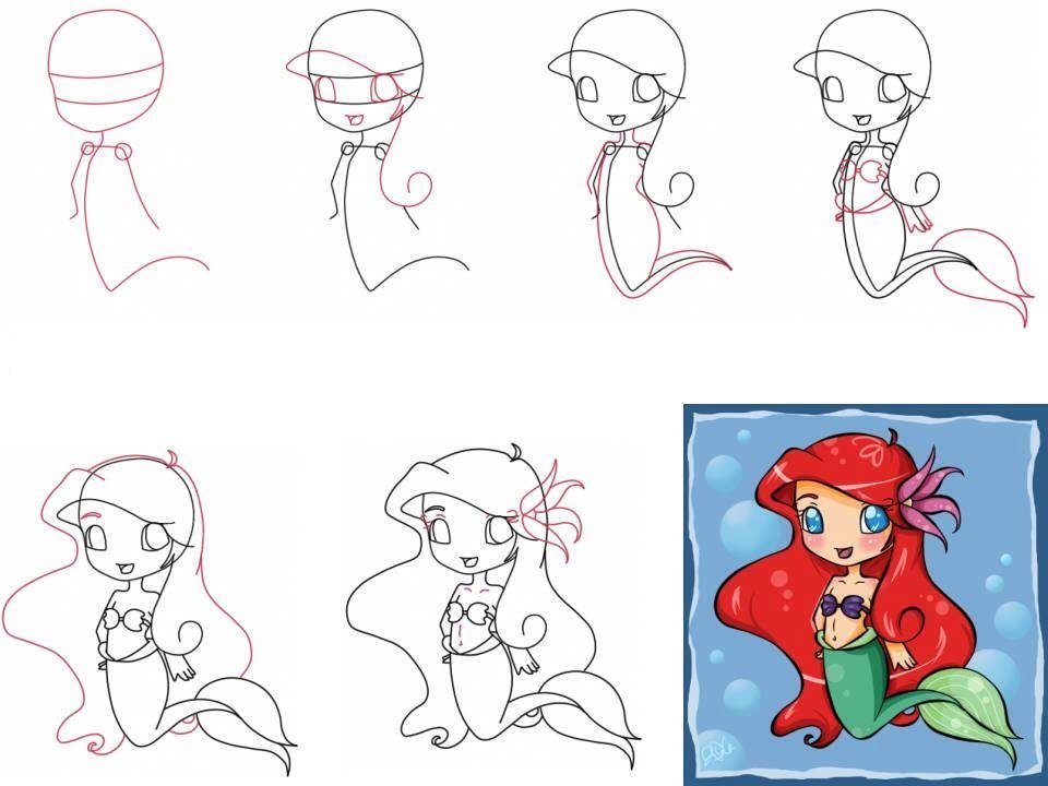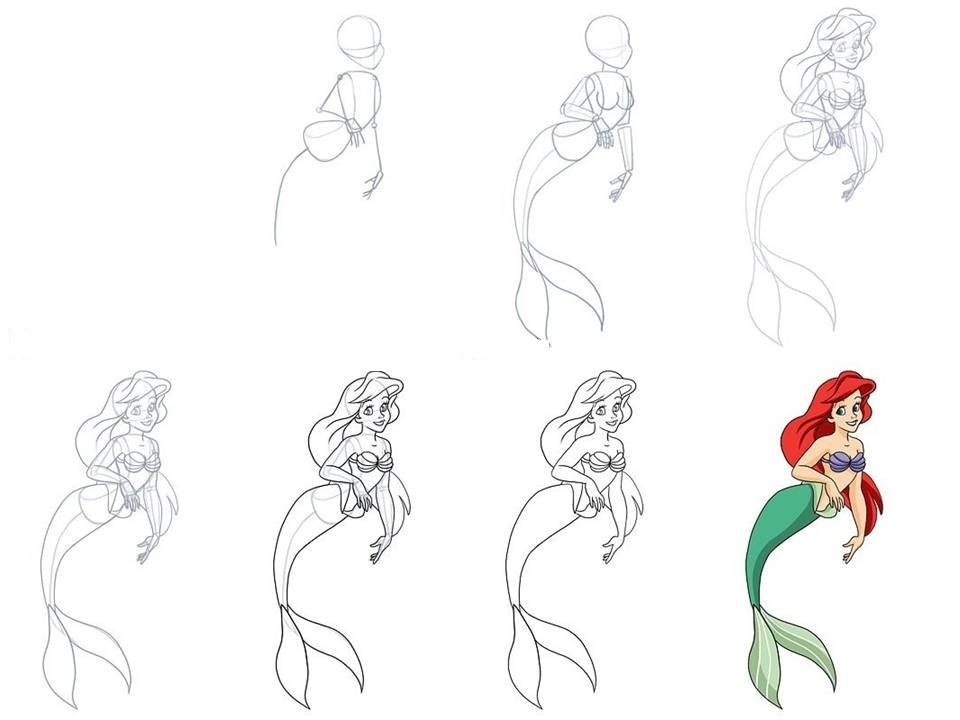 ![Рисунки Ариель пошагово]()