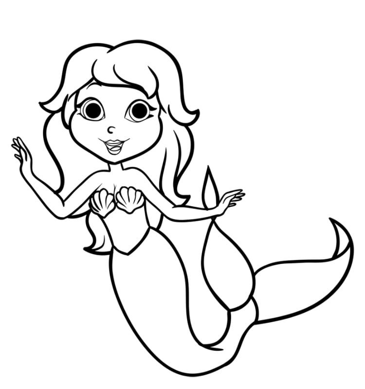 ![Русалка раскраска легкая]()