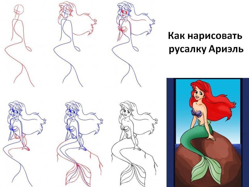 Как нарисовать русалочку поэтапно для детей