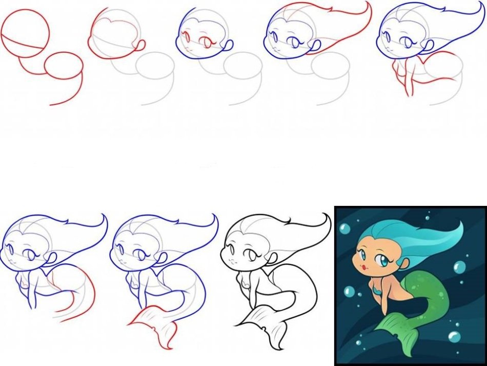 Пошаговое рисование русалки